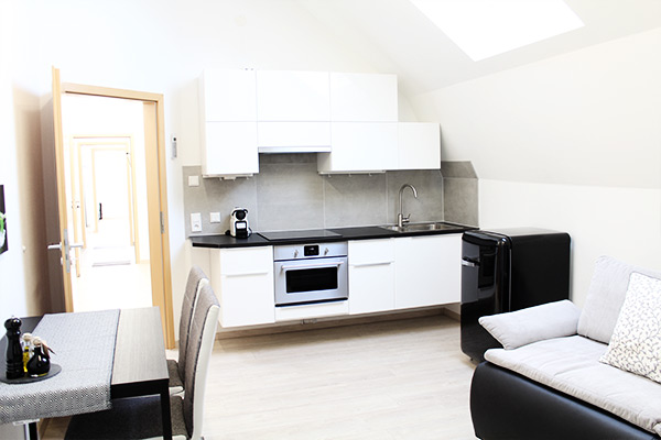 Wenn Sie bei uns zu Gast sind, ziehen Sie in ein komplett möbliertes Apartment ein. Dazu gehören eine voll ausgestattete Küche/Kitchenette sowie TV.